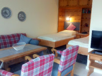 Wohn- & Schlafzimmer | Doppelbett mit Bandscheibenmatratzen, Sitzbereich |